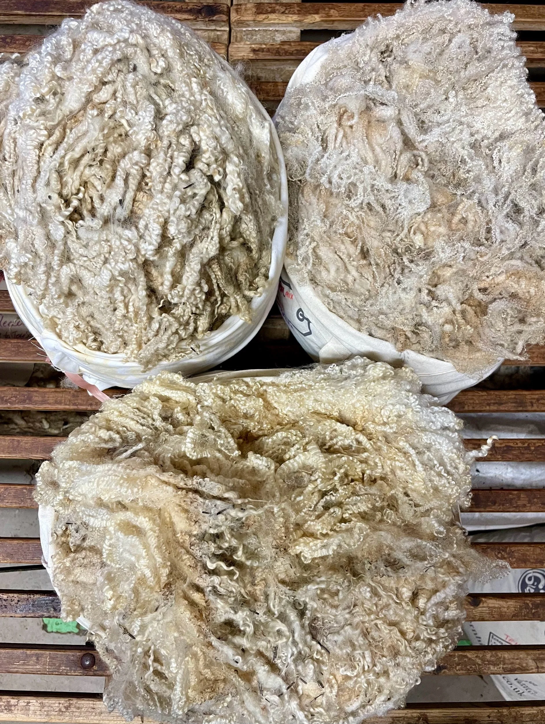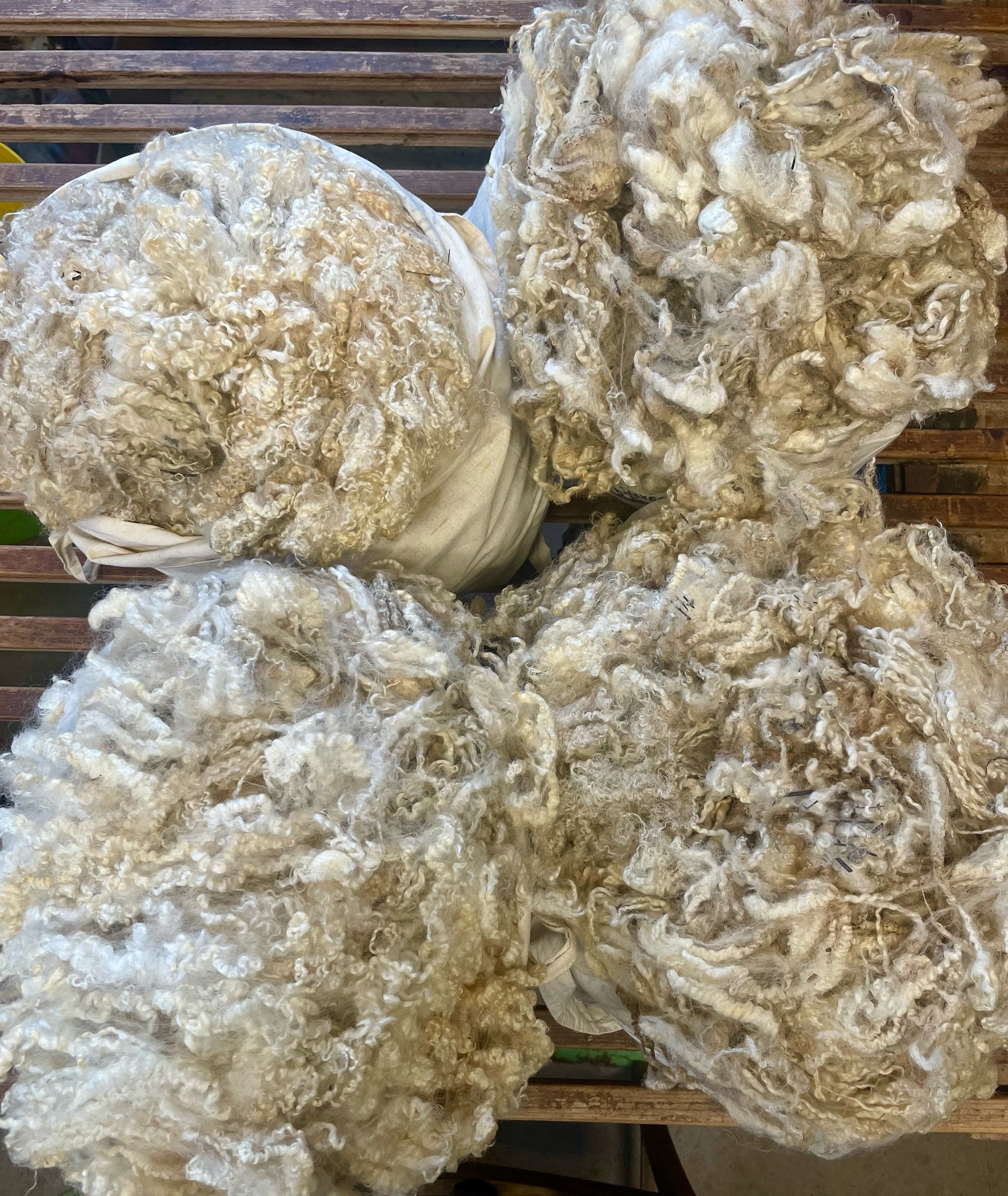 Lustre x BFL Teeswater fleeces in a variety of weights;