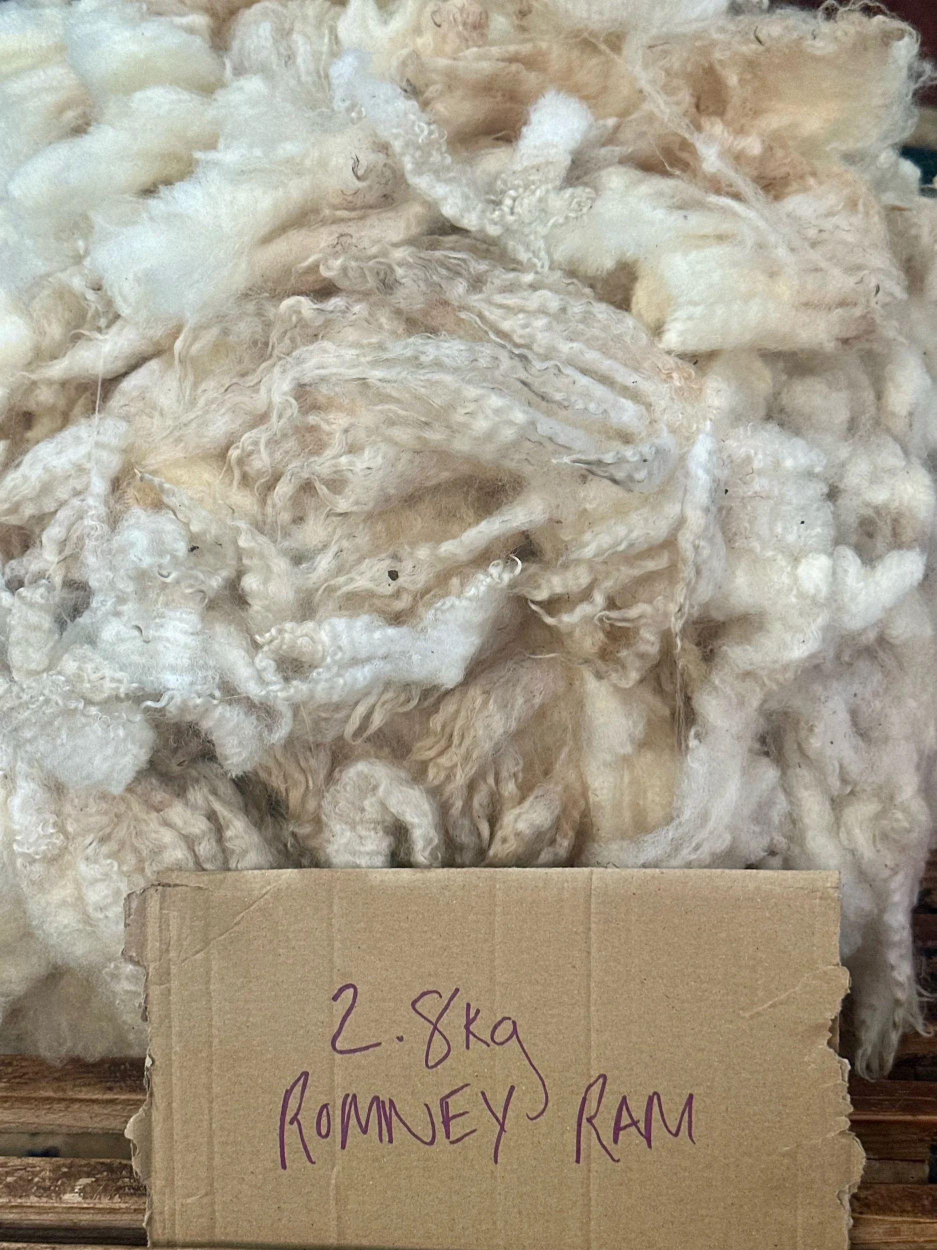 We have our usual huge masses of strong, dense, long, colourful fibres from our Pure Romney Rams, plus a pedigree Ryeland from Andrews family flock in Butcombe and a couple of pure white BFL fleeces.
