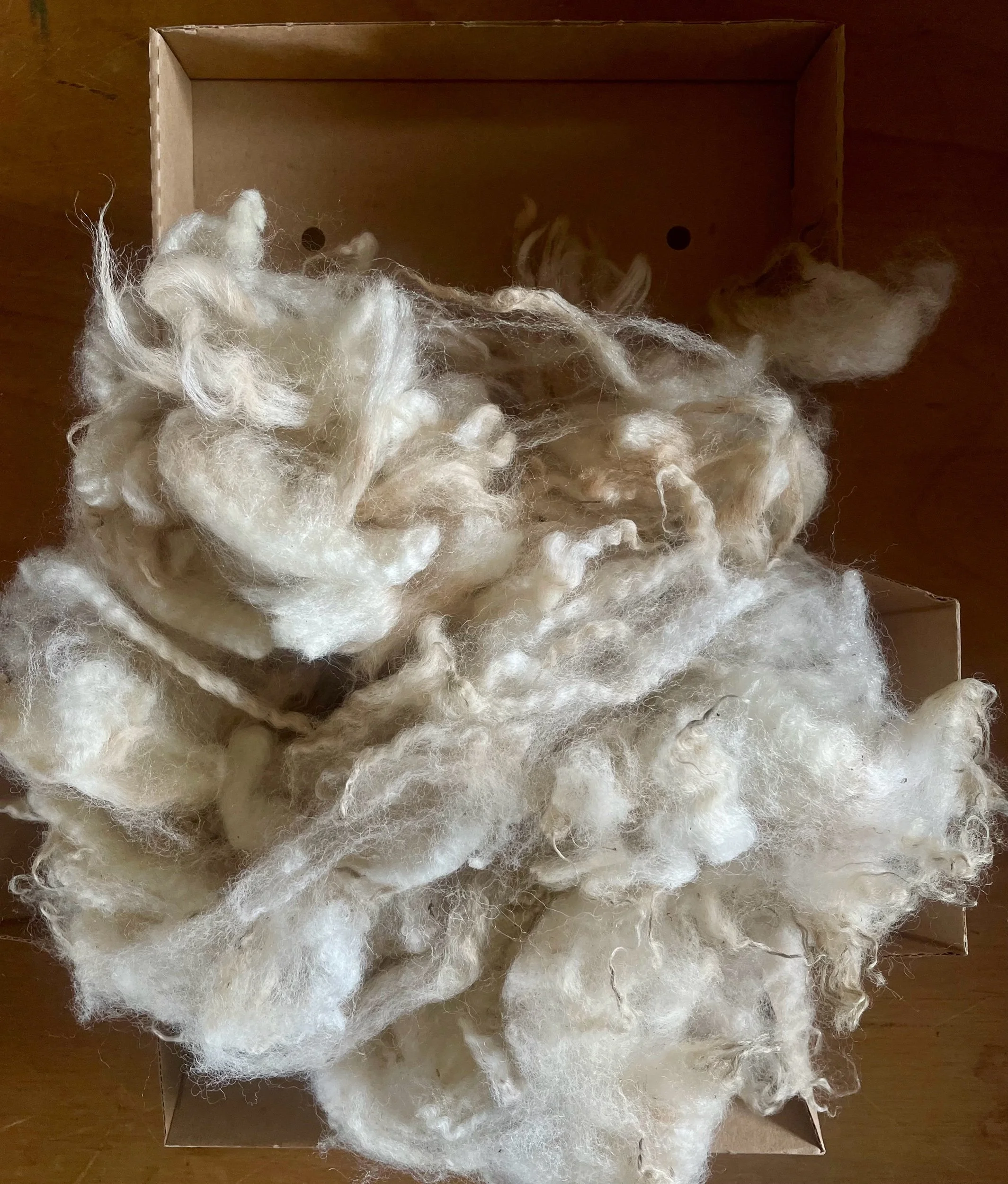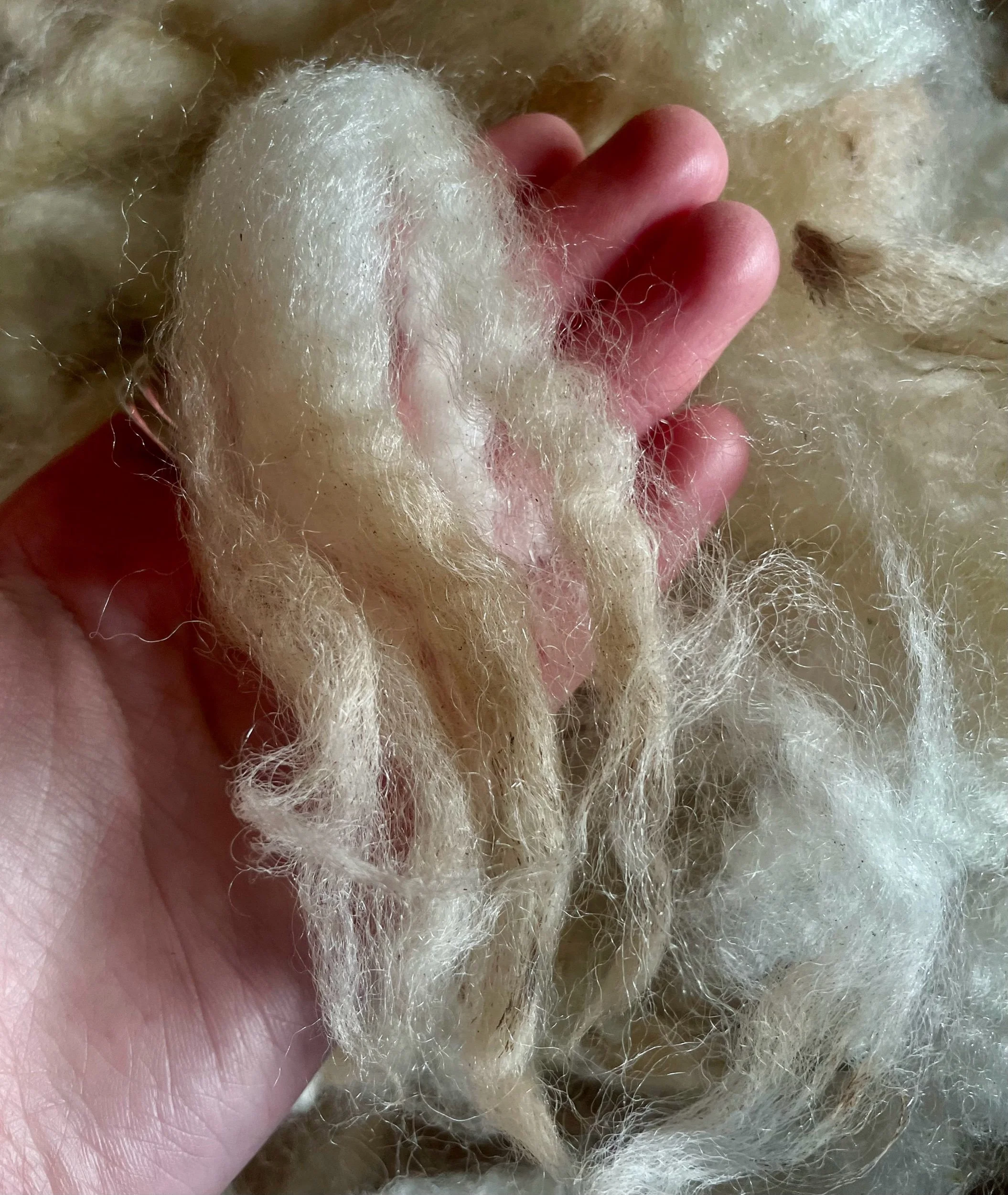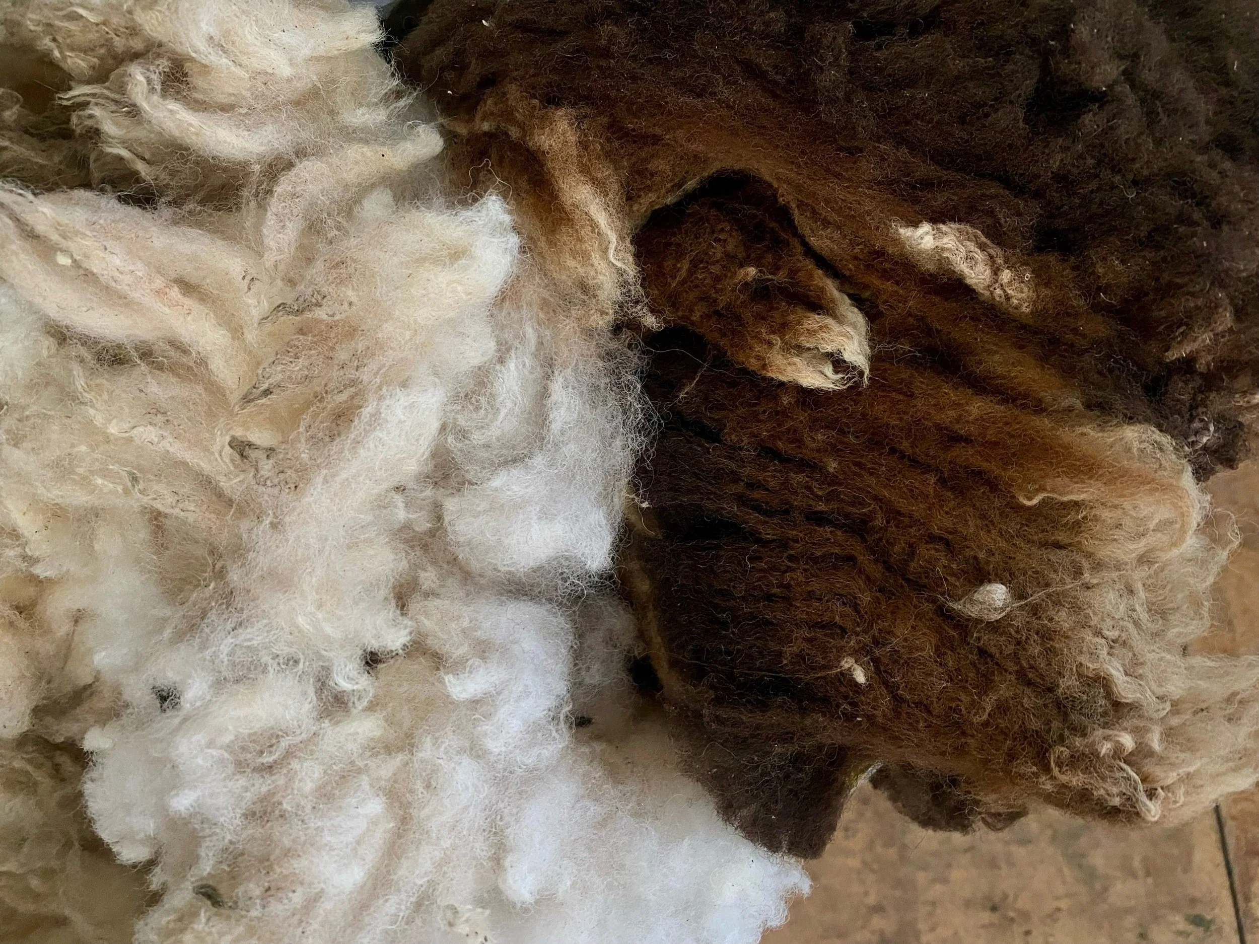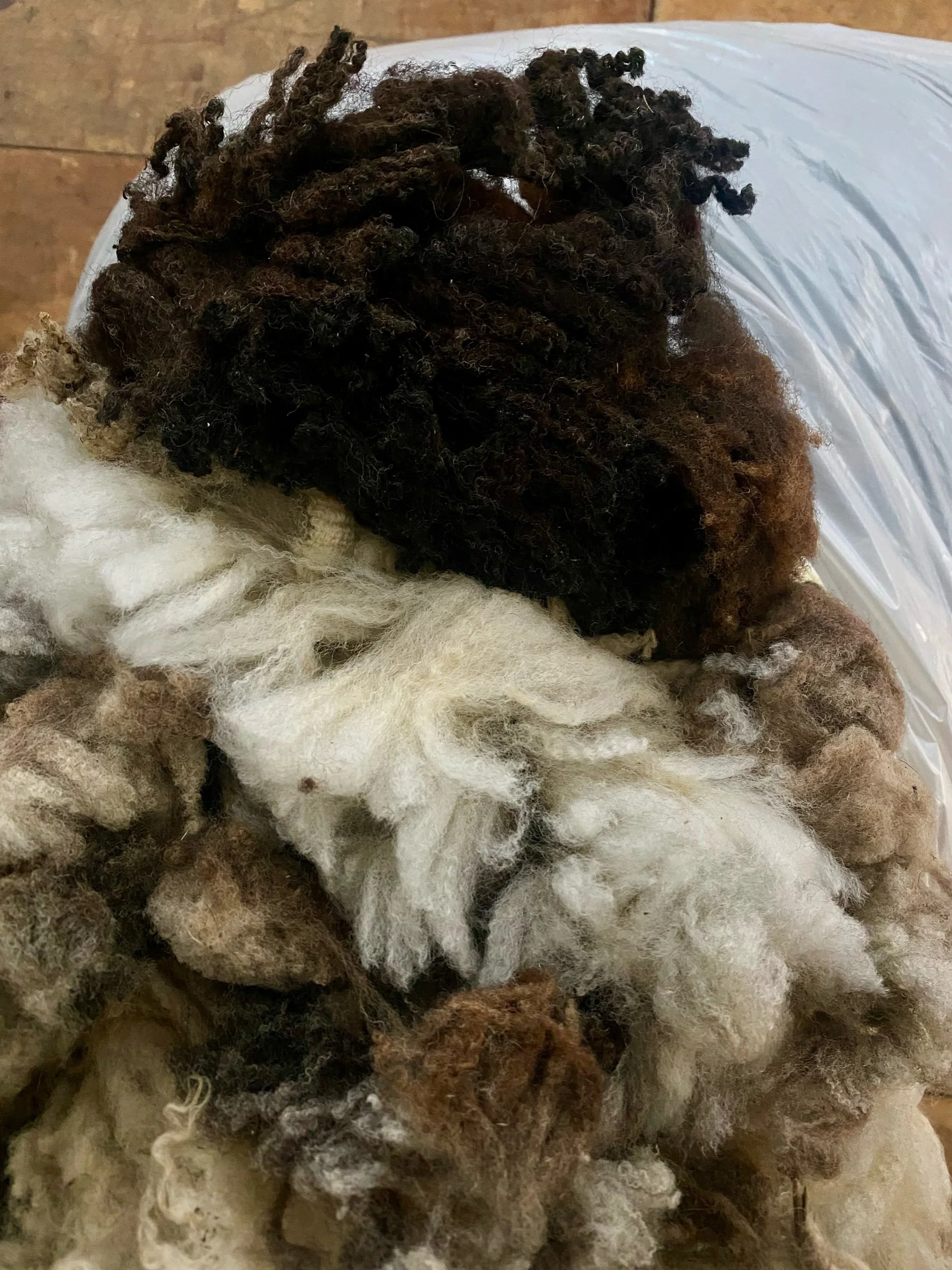 These we consider beautiful fleeces with good colour & lustre, yet being tender with a break in the fibre or semi felted means they have been rejected for Spinning so are £9 per kilo